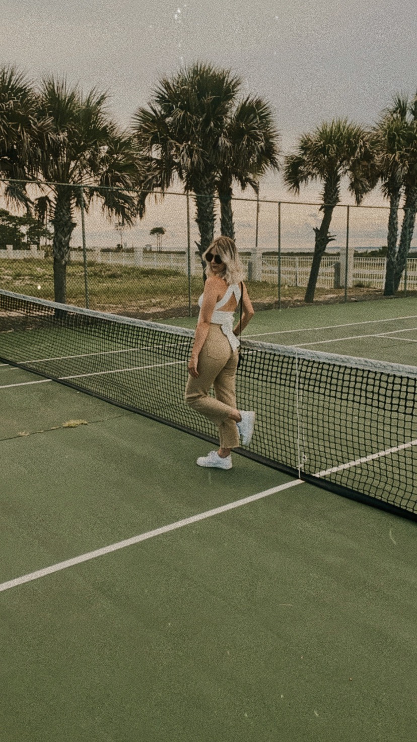 Did a tennis court photoshoot with my boyfriend on vacation and this outfit was so cute for it! This wrap top can be styled in different ways and it’s perfect to add something unique to a summer outfit. These jeans were the perfect length for me, I love the cropped and flared look.