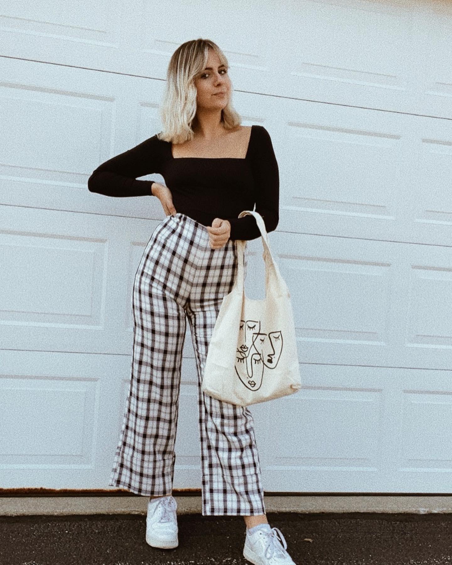 I wanted these pants for forever and finally got them!! They’re perfect for fall and also transitional summer to fall outfits since they’re light and you definitely won’t get overheated in them. Just kept the rest of my outfit simple with solid black on top and sneakers, and a neutral bag w a cute design also from princess polly! I also think these would be really cute styled with an oversized sweater or a turtleneck w a cute band tshirt overtop for colder days. I’m 5’4 and usually a size 0-2 in pants and got a 2 in these for reference.