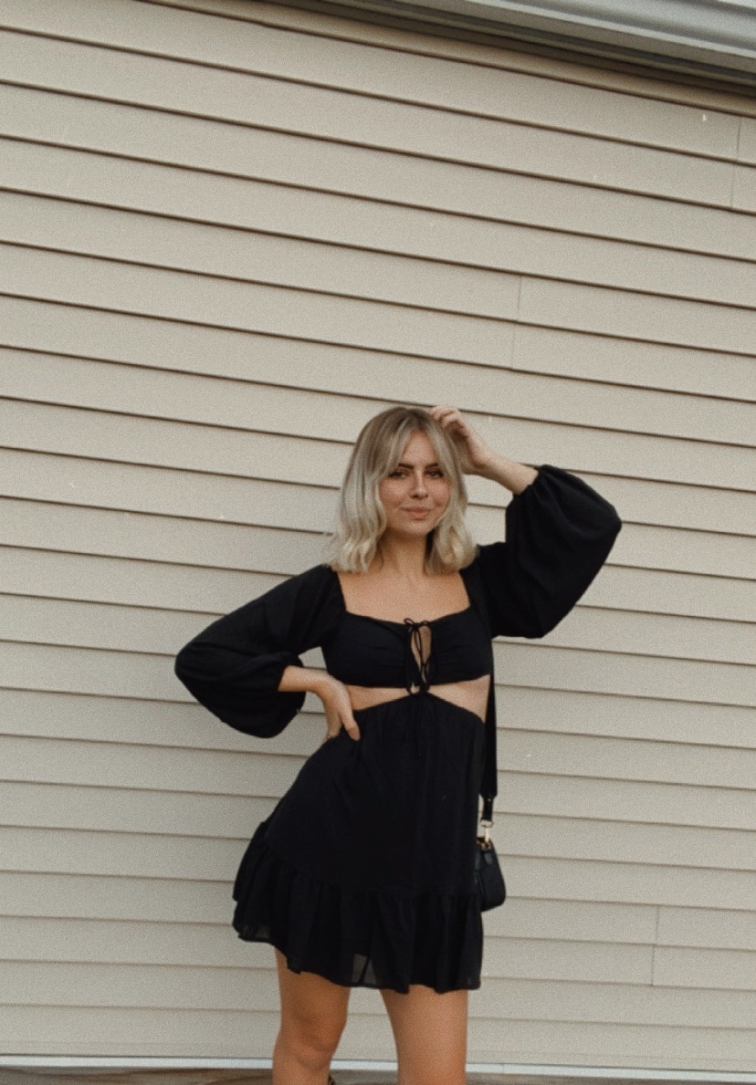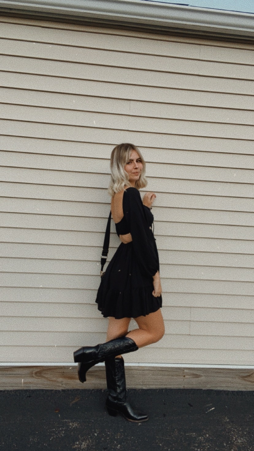 Just recently ordered this dress and I’m in love! I wore to a country concert so I styled it with some western boots that I thrifted. The cutout is so cute and really flattering. You can never have too many black dresses they’re so timeless and versatile.