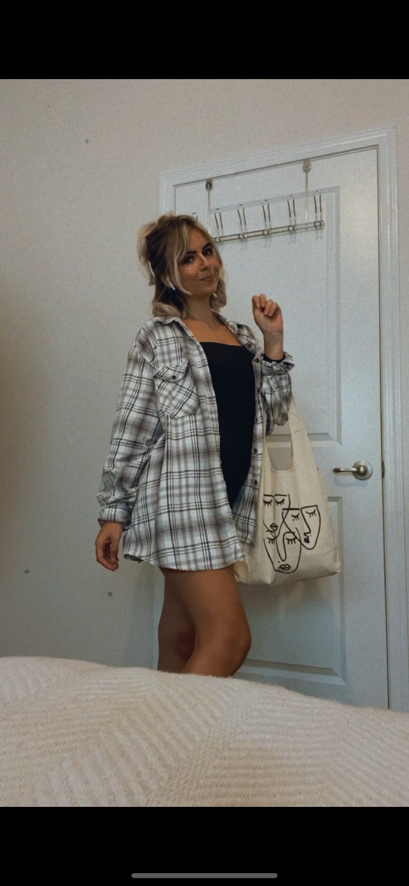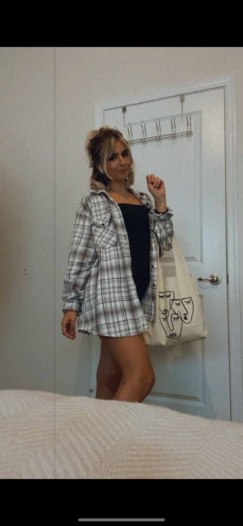 My favorite romper!! This is so cozy and can be worn w many different things. I love it with a flannel and sneakers and I’ve even worn it with pants over top. It’s super figure flattering and the material is stretchy and comfy.